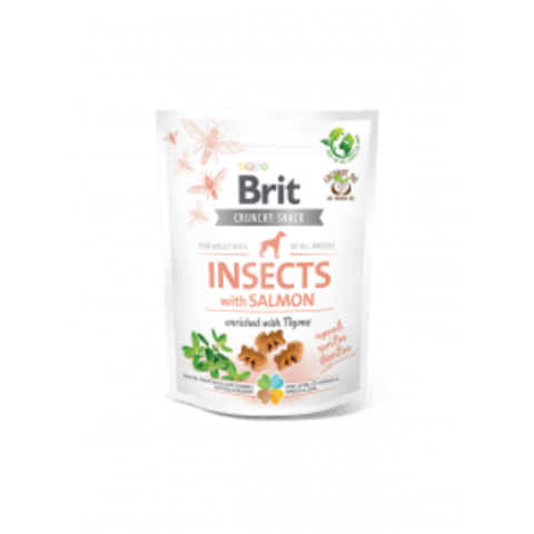 A Brit Care Crunchy Cracker Insects with Salmon enriched with Thyme egy ízletes és egészséges jutalomfalat, melyet támogatja az egészséges emésztést.