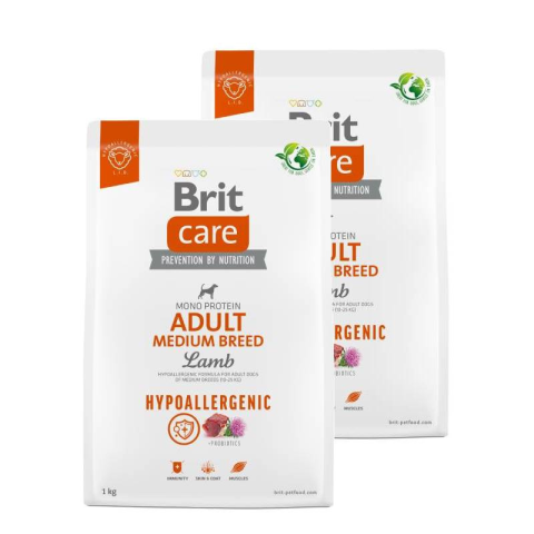 Brit Care Dog Hypoallergenic Adult Medium Breed bárány, rizs kutyatáp 2x1kg kutyaeledel termékleírás