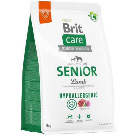Brit CARE Hypoallergenic Senior Lamb 3kg bárányos öreg kutyáknak kutyaeledel termékleírás