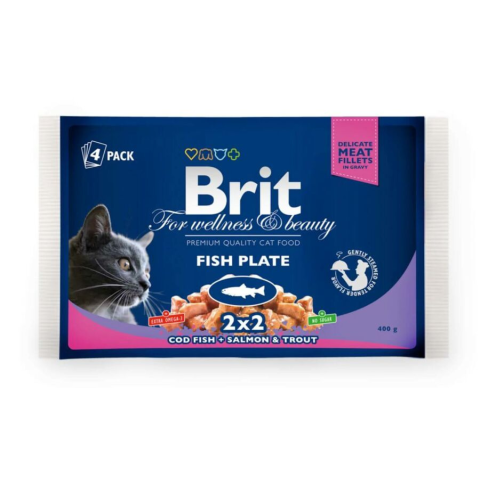 Brit Premium Cat Pouches Fish Plate 400g (4x100g) macskaeledel termékleírás
