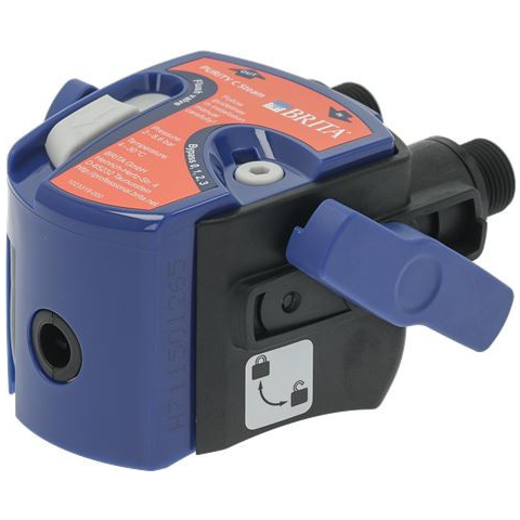 Professzionális szűrőfej BRITA PURITY C Steam vízszűrő patronokhoz, kifejezetten kombi párolókhoz és sütőkhöz. Az állítható bypass szelep segítségével optimalizálja a vízminőséget, megvédi a berendezéseket a vízkőtől és csökkenti a karbantartási költségek