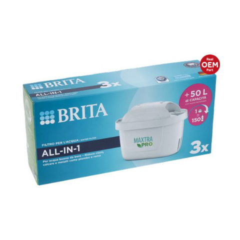 Élvezze a tiszta, friss ízű vizet a BRITA MAXTRA PRO ALL-IN-1 vízszűrő betétekkel! A 3 darabos szett hatékonyan csökkenti a vízkövet és az ízrontó anyagokat, miközben védi háztartási kisgépeit.