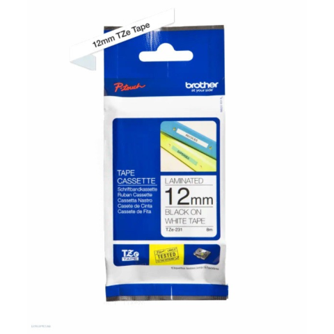 Vízálló, fényálló, hosszú életű, öntapadós, laminált, 8 m hosszú szalagok ipari körülmények közé is. Brother TZe-231– Fehér alapon fekete, 12mm széles laminált szalag. A szalag 8 méter hosszú. Azokkal a P-touch címkéző készülékekkel kompatibilis, amely