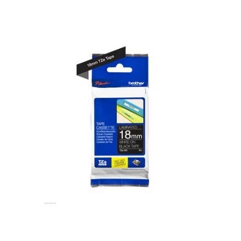 Brother TZe-345 Fekete alapon fehér szalag, 18 mm széles Vízálló, fényálló, hosszú életű, öntapadós, laminált, 8 m hosszú szalagok ipari körülmények közé is. Az eredeti TZe-345 laminált szalag számos Brother P-touch címkéző készülékekkel kompatibilis.