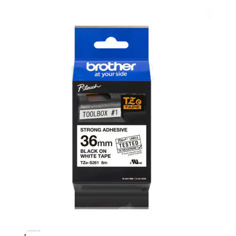 Brother TZe-S261 P-touch, Fehér alapon fekete - 36mm-es. Elsősorban nem sima vagy nem tiszta felületre ajánlott, a ragasztó anyag jobban be tud folyni a felület egyenlőtlenségeibe, mint a normál TZe szalagok ragasztója. Többi tulajdonsága a TZe szalagokk