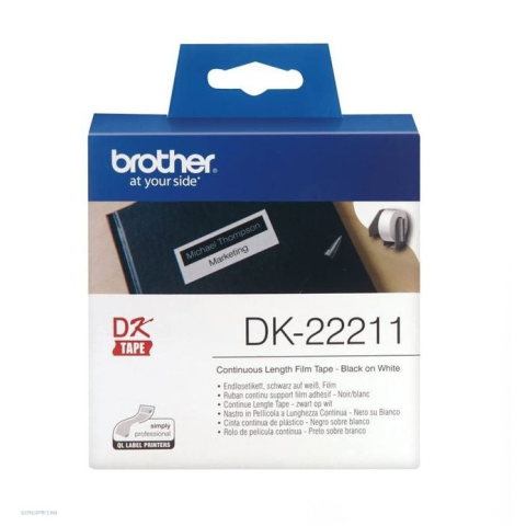 Brother DK-22211 fehér folytonos filmszalag tekercsben, 29 mm. A szalag hossza 15,24 m A DK-22211 fehér alapon fekete, folytonos filmszalagot a Brother szigorúan tesztelte, hogy Ön a lehető legbiztonságosabb és legmegbízhatóbb kellékkel dolgozhasson.