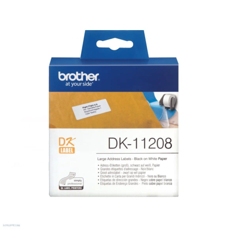 Brother DK-11208 fehér alapon feketeszalag tekercsben, 38 mm x 90 mm, 400 címke/tekercs. Eredeti Brother DK-11208 fehér alapon fekete címke felhasználását tekintve számos lehetőséget kínál Önnek. Otthoni és irodai környezetben egyaránt használható. Az e