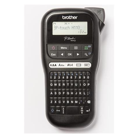 Elektromos feliratozógép, BROTHER PT-H110 Fekete színű elegáns feliratozógép. -csak 12, 9, 6 és 3,5 mm széles TZe szalagokkal működik -QWERTY kiosztású billentyűzet, puha gombok -kézi szalagvágó, ami felhasználó által cserélhető (TC-4) -2 soros, 16 ka