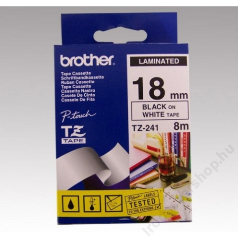 Feliratozógép szalag, 18 mm x 8 m, BROTHER, TZe-241 fehér-fekete (QPTTZ241) kopásálló vegyszerálló könnyen lehúzható nem fakul laminált hőálló vízálló erősen tapadó Gyártó/első EU forgalmazó elérhetősége: Brother International (Nederland) B.V. Zander