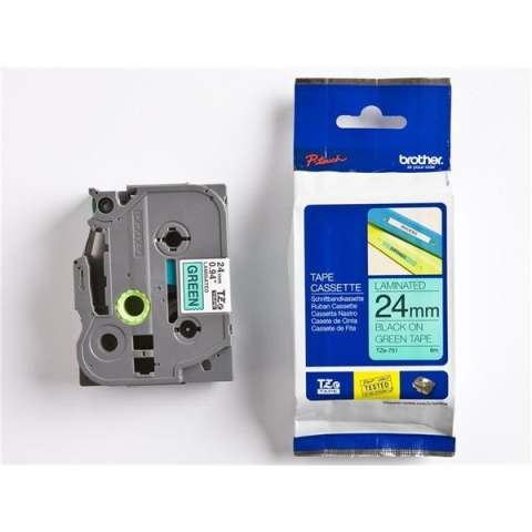 1 kép Brother Feliratozógép szalag, 24 mm x 8 m, BROTHER, "TZe-751" zöld-fekete