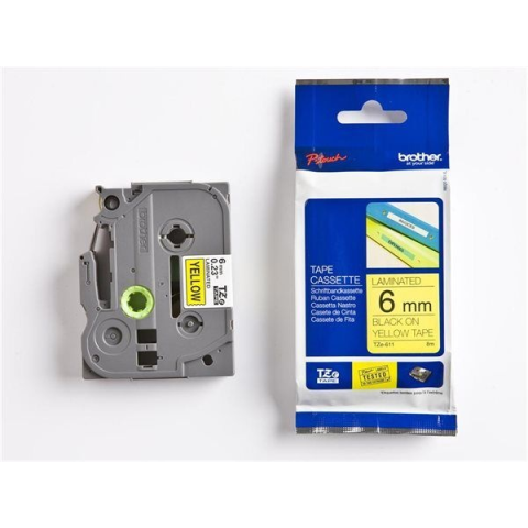 1 kép Brother Feliratozógép szalag, 6 mm x 8 m, BROTHER, "TZe-611" sárga-fekete