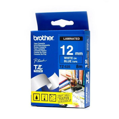 1 kép Brother Festékszalag TZE535 P-TOUCH 12mm fehér kéken