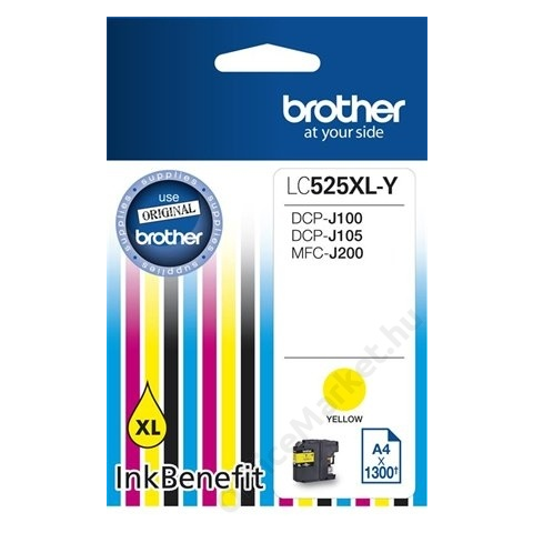 Brother LC525XLY Tintapatron DCP-J100, J105 nyomtatókhoz, BROTHER sárga, 1300 oldal (TJBLC525XLY) nyomtatópatron & toner termékleírás