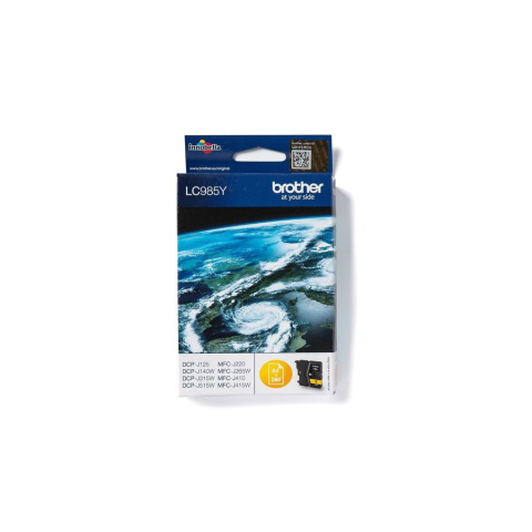 Brother LC985Y. Felszerelés típusa: Egy darabos csomag, Nyomtatási oldalszám színes tintapatronnal: 260 oldalak, Nyomtatási színek: Sárga, Mennyiség csomagonként: 1 db