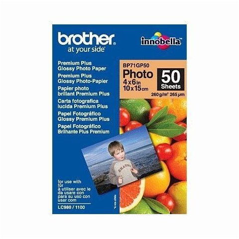 Fotópapír - 50 lap, formátum: 10 × 15 cm, tintasugaras nyomtatóhoz, fényes, anyagsűrűség: 260 g/m2 A Brother BP71GP50 Premium Glossy fényes fotópapír az LC-980/985/1100/1100HY/1240/1280XL patronokat használó tintasugaras multifunkciós BROTHER nyomtatókhoz alkalmas. A régebbi modellekhez n