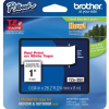 24 mm széles, 8 m hosszú, fehér alapon piros betűs, öntapadós címkeszalag laminált tartós feliratok nyomtatásához.