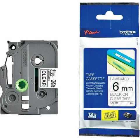 Címkéző szalag - TZe típusú, eredeti, fekete nyomtatási szín, átlátszó alapszín, laminált, ellenáll kopás ellen, 1 szalag a csomagban, mérete 6 mm × 8000 mm (SZ×H) A tökéletes TZ laminált szalag számos különféle helyzetben tehet jó szolgálatot. Minden kazetta 8 méter szalagot tartalmaz, amelyet termékek, berendezések, munkaterületek kényelmes jelölésére le