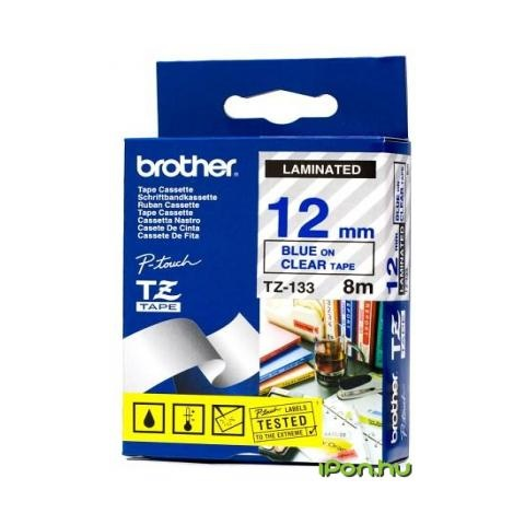 12 mm széles, 8 m hosszú, átlátszó alapon kék színű tartós laminált feliratokhoz nyomtatószalag.