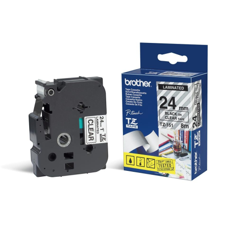 Brother TZE-151 laminált P-touch szalag (24mm) Black on Clear - 8m nyomtató kellék 1 kép