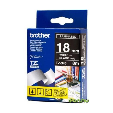 18 mm széles, 8 m hosszú, fekete alapon fehér színű tartós laminált feliratokhoz szalag.