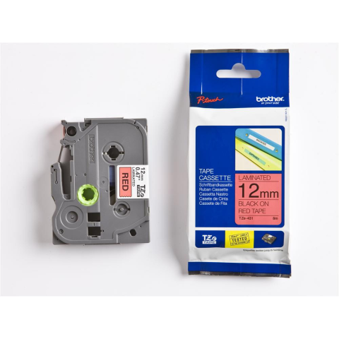 1 kép Brother TZE-431 laminált P-touch szalag (12mm) Black on Red - 8m