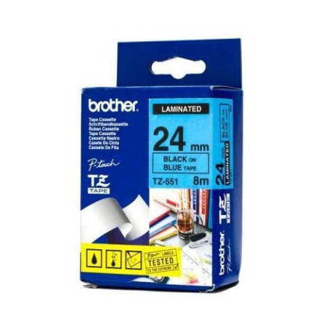 Az eredeti TZe-551 laminált szalag számos Brother P-touch címkéző készülékekkel kompatibilis. A kék alapon fekete színkombinációnak köszönhetően könnyen olvasható, így otthoni és irodai környezetben egyaránt jól használható.