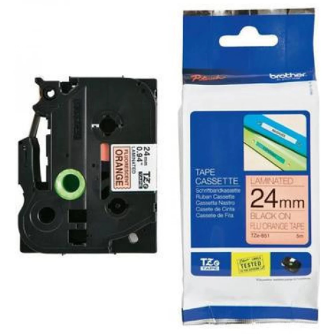 24 mm széles, 8 m hosszú, kék alapon fehér színű tartós laminált feliratokhoz nyomtatószalag.