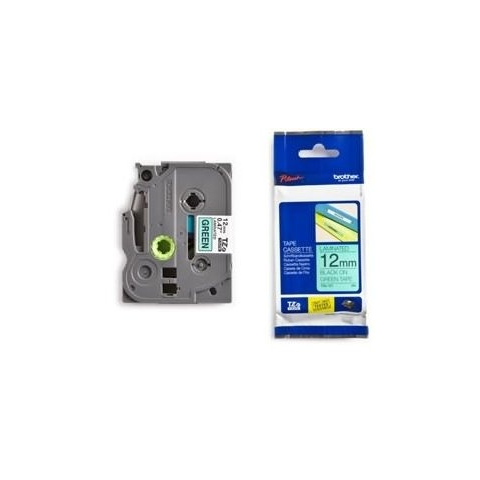 12 mm széles, 8 m hosszú, zöld alapon fekete színű tartós laminált feliratokhoz nyomtatószalag.