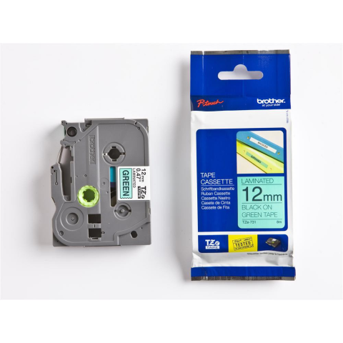 1 kép Brother TZE-731 laminált P-touch szalag (12mm) Black on Green - 8m