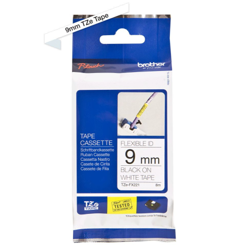 1 kép Brother TZE-FX221 laminált P-touch szalag (9mm) Black on White - 8m