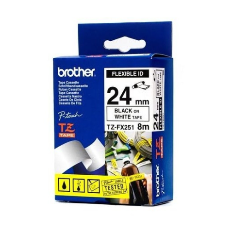 1 kép Brother TZE-FX251 laminált P-touch felxibilis szalag (24mm) Black on White - 8m