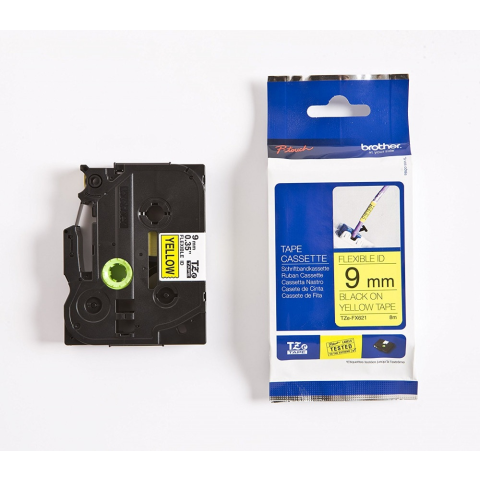 1 kép Brother TZE-FX621 laminált P-touch szalag (9mm) Yellow On Black - 8m