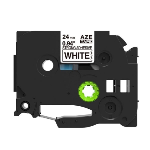 Címkéző szalag - TZe típusú, eredeti, fekete nyomtatási szín, fehér alapszín, extra ragadós és laminált, ellenáll extrém hőmérséklet ellen, kopás ellen, UV sugárzás ellen, víz ellen és vegyszerek ellen, mérete 24 mm × 8000 mm (SZ×H) Tökéletesen erős laminált TZ ragasztószalag, mely rengeteg helyzetben felhasználható. Egy patron 8 méter szalagot tartalmaz, mellyel kényelmesen lehet felcímkézni különféle termékeket, felszereléseket