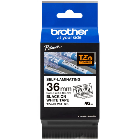 Brother TZE-SL261 szalagkazetta, fehér alapon fekete.