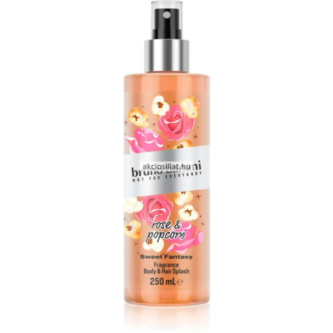Bruno Banani Sweet Fantasy Rose & Popcorn testpermet 250ml A Bruno Banani Sweet Fantasy Rose and Popcorn test- és hajpermet egy illatosított spray, amely egy felejthetetlen illatos utazásra visz. A termék kiáramló aromája a málna, az illatos pattogatott