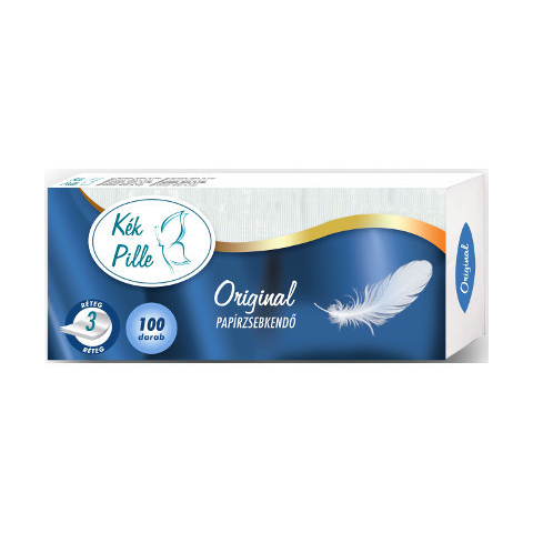 Kék Pille papírzsebkendő – 3 réteg, 100 db – Original Mindennapi megbízhatóság a fehér, puha és erős Kék Pille Original papírzsebkendővel. A 3 réteg biztosítja a kiváló nedvszívást és az akár könnyeztető időben is megállja a helyét. Csomagolás: 100 d