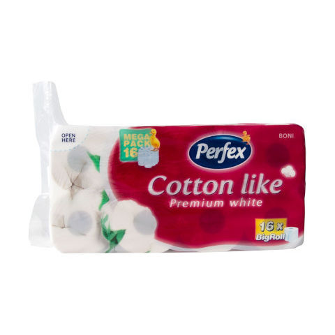 Perfex Cotton Like wc papír 16 tekercs – 3 réteg Főbb jellemzők 3 réteg - magas nedvszívóképesség és erősség Cotton Like technológia - puhaság a pamutszövethez hasonló érzetben 16 tekercs - hosszabb használatra elegendő egy csomagban Lágy ér