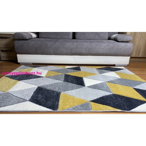 Ez a modern szőnyeg tökéletes választás otthonába! 80 x 150cm méretével és sárga színével elegáns és stílusos megjelenést biztosít. 100% pp heat-set frise, 12mm vastagságával kényelmes tapintású és tartós. Karbantartása egyszerű: rendszeres porszívózássa
