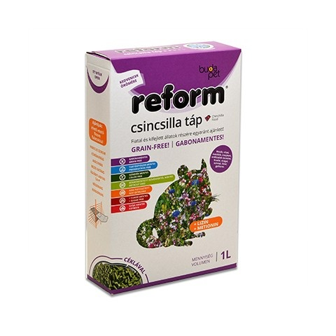 GABONAMENTES eleség csincsillák számára. Töltő tömeg: 660g ±5% Reform táp optimális mennyiségben tartalmazza mindazokat a tápanyagokat, amelyek a csincsillák egészséges táplálásához hosszú éveken át.