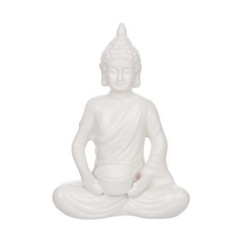 1 kép Buddha szobor mécsestartóval, fehér 29cm