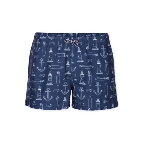Budmil Beach Short 20160515-001. Színe: s.kék-fehérrövid fazonú, mintás női shortelején két zsebbelelején és hátsó felén nyomott mintával 20160515-001