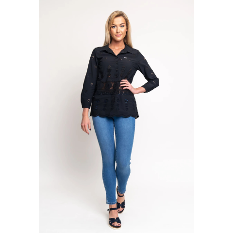 hosszú ujjú női blúzeleje végig kigombolhatófémcímkével díszített