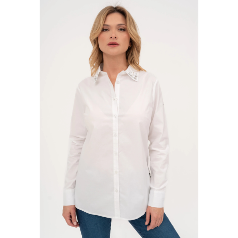 női blúz rugalmas anyagbólegyenes fazonS1: strasszokkal és hímzéssel díszítveS2: fémcímkével díszítve