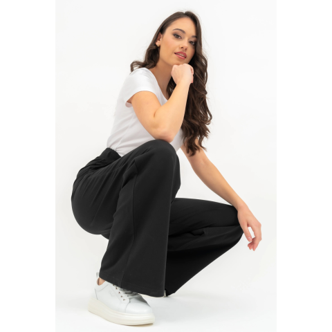 női bő szárú szabadidőnadrág rugalmas anyagbólalapanyaga belül bolyhozatlan hímzett mintával díszítve