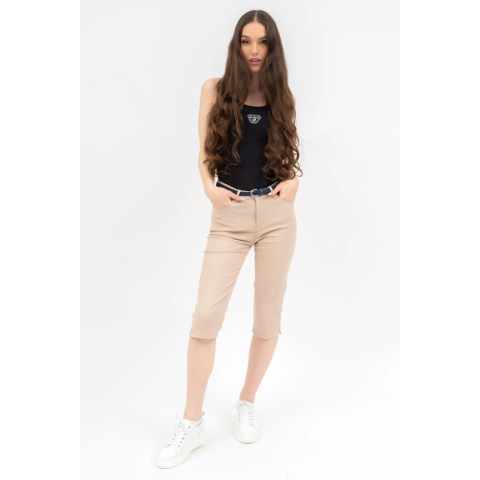 női caprinadrág szövött anyagból push-up fazonnormál derékmagasság derekában keskeny fonott övvelfémcímkével díszítve
