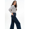 bő szárú női farmernadrág dereka magasítottfém és műbőr címkével díszítve