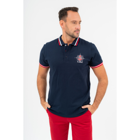 Budmil Férfi Galléros Póló 20730251-004. Színe: s.kék modern fit férfi galléros pólóhímzett és nyomott mintával díszített 20730251-004