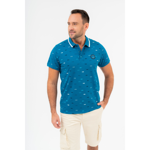 Budmil Férfi Galléros Póló 20730256-001. Színe: kék modern fit férfi galléros pólószövött címkével díszített 20730256-001