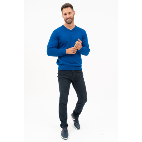 Budmil Férfi Kötött Pulóver 20050807-004. Színe: kék férfi vékony kötött pulóverhímzéssel díszítve 20050807-004