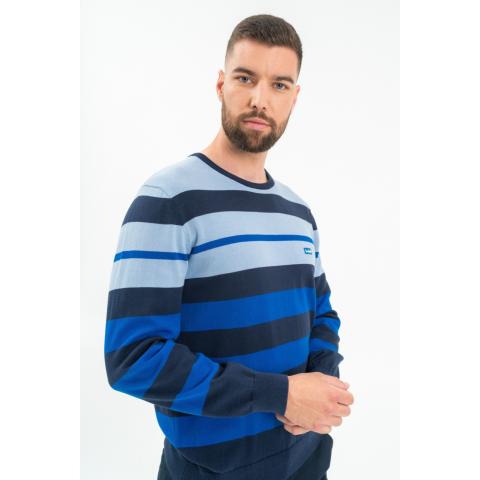 Budmil Férfi Kötött Pulóver 20050832-002. Színe: kék férfi vékony kötött pulóverműbőr címkével díszítve 20050832-002